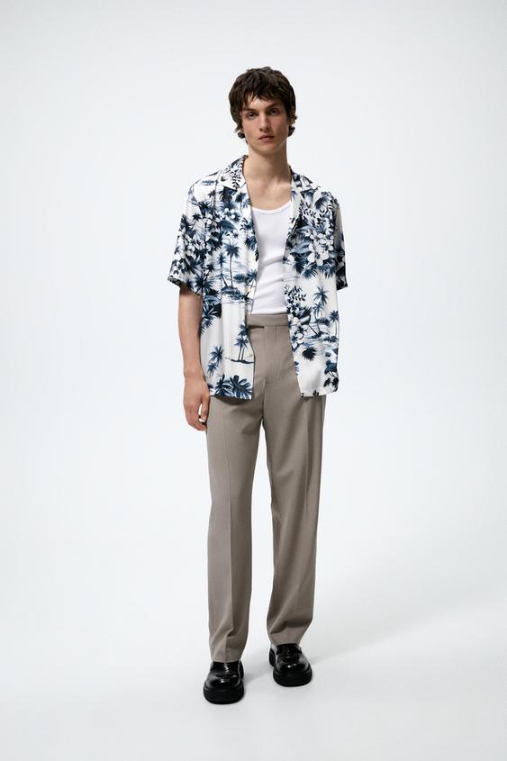 Palm Tree Print Shirt Oyster White Zara Turkey
